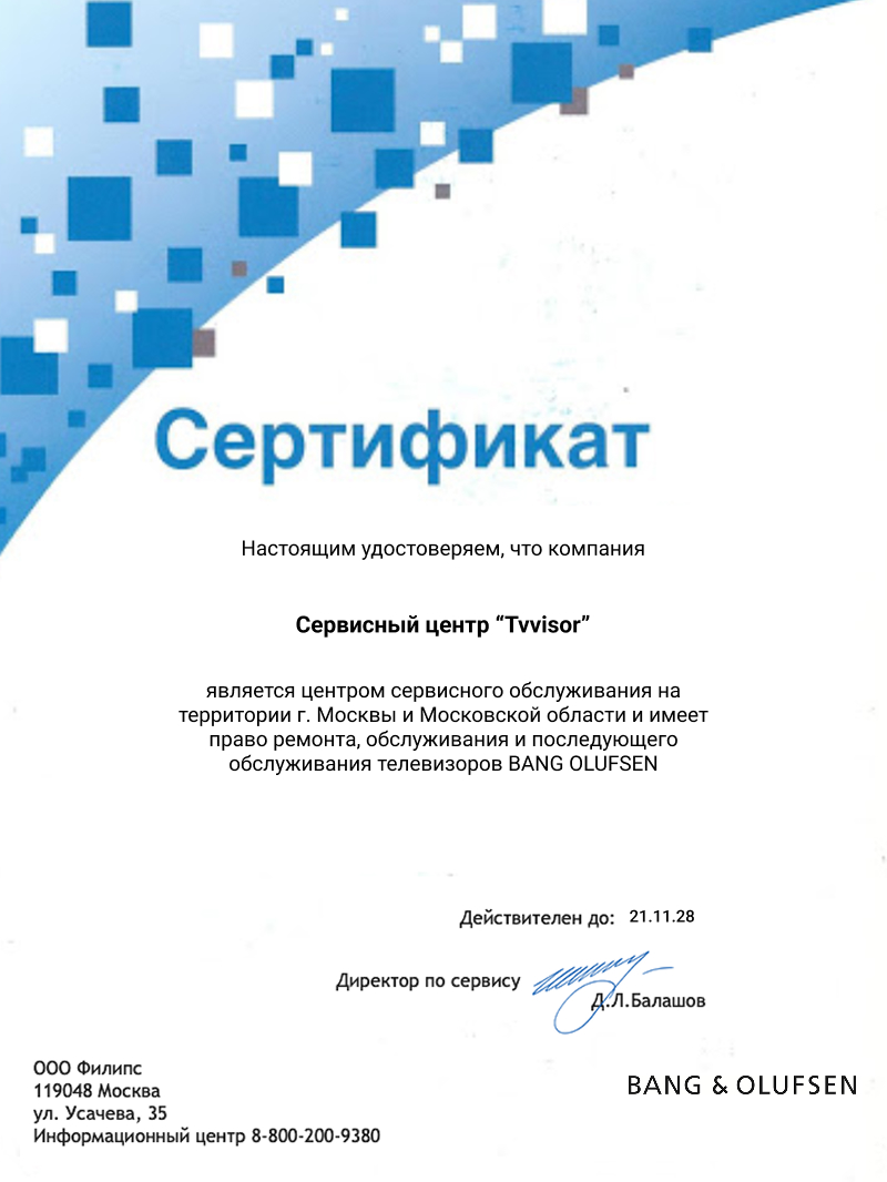 Воспользуйтесь услугами опытного мастера для быстрой и качественной настройки и ремонта вашего телевизора Bang & Olufsen. Оставьте заявку на сайте или позвоните: +7 (495) 137-02-73.
