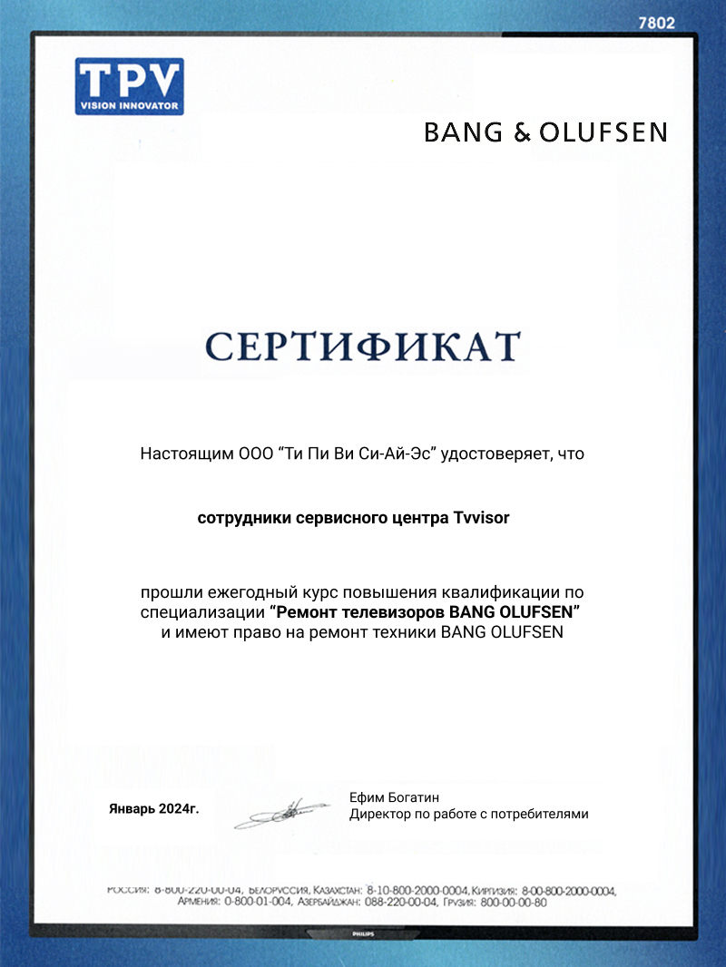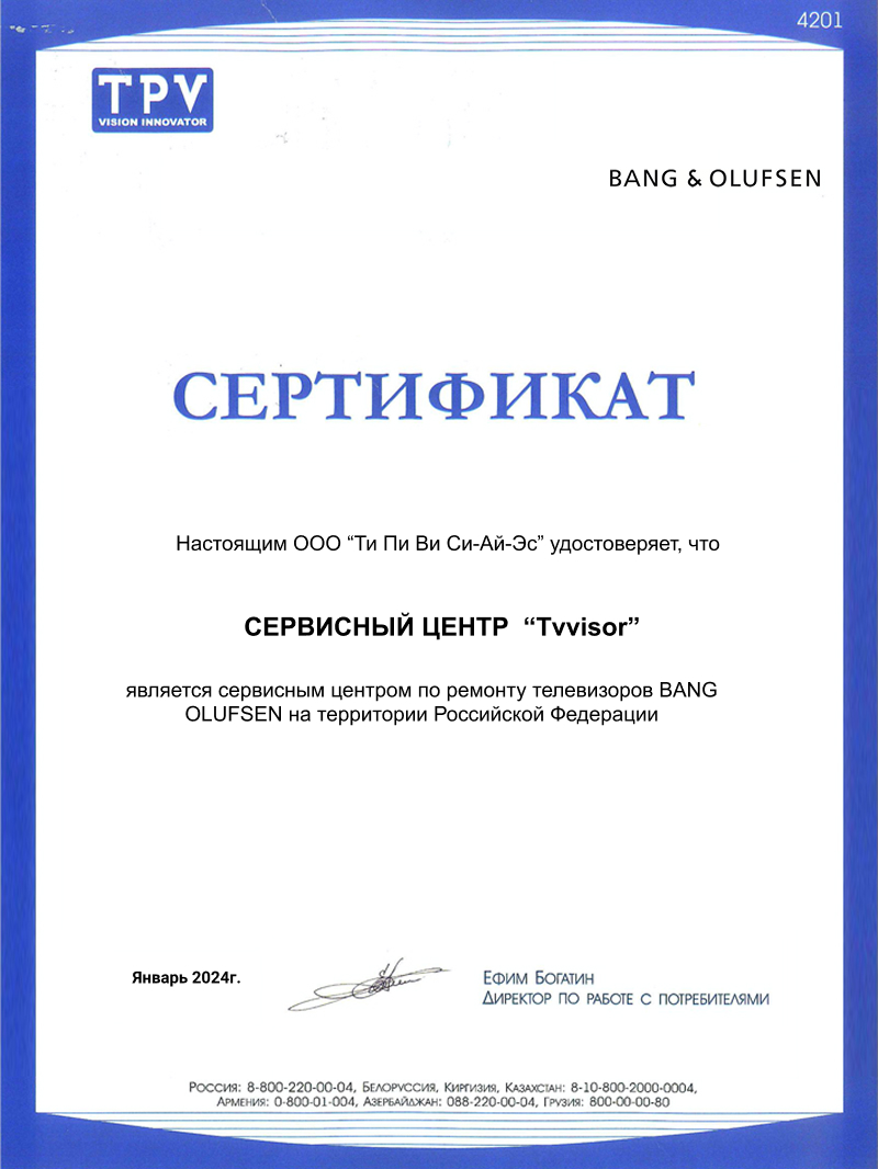 Для вызова мастера для ремонта телевизора Bang and Olufsen вам достаточно: