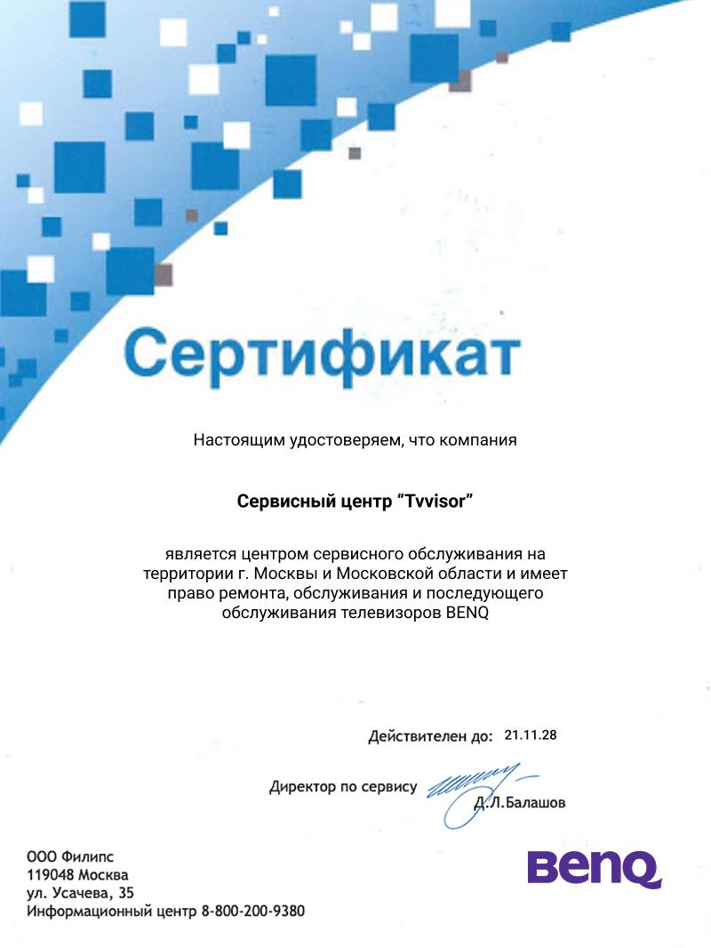 С нашим опытным мастером ваш телевизор BenQ будет настроен и отремонтирован быстро и с гарантией качества. Оставьте заявку на сайте или позвоните: +7 (495) 137-02-73.