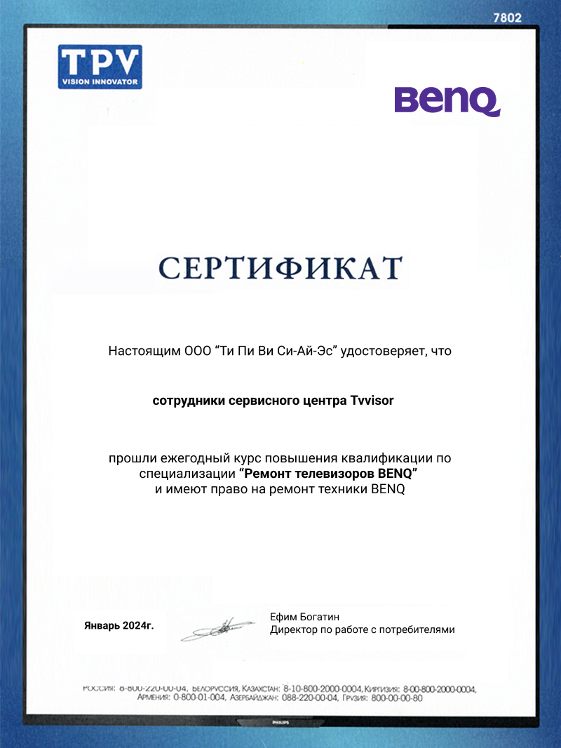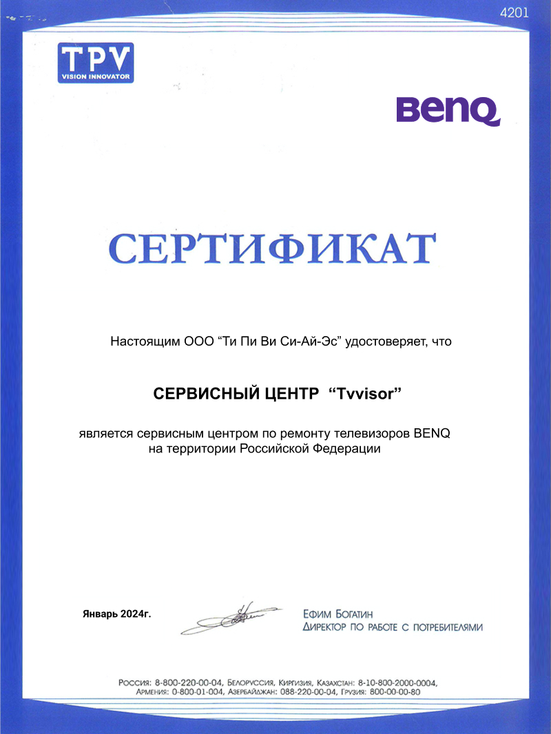 Чтобы вызвать мастера для ремонта телевизора BenQ, вам нужно: