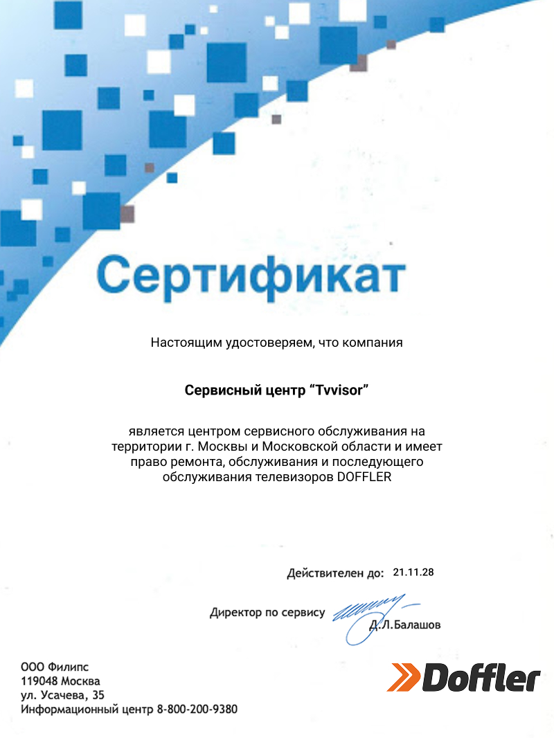 Наши специалисты быстро и качественно устранят эти и другие неисправности, восстанавливая телевизоры Doffler в кратчайшие сроки.