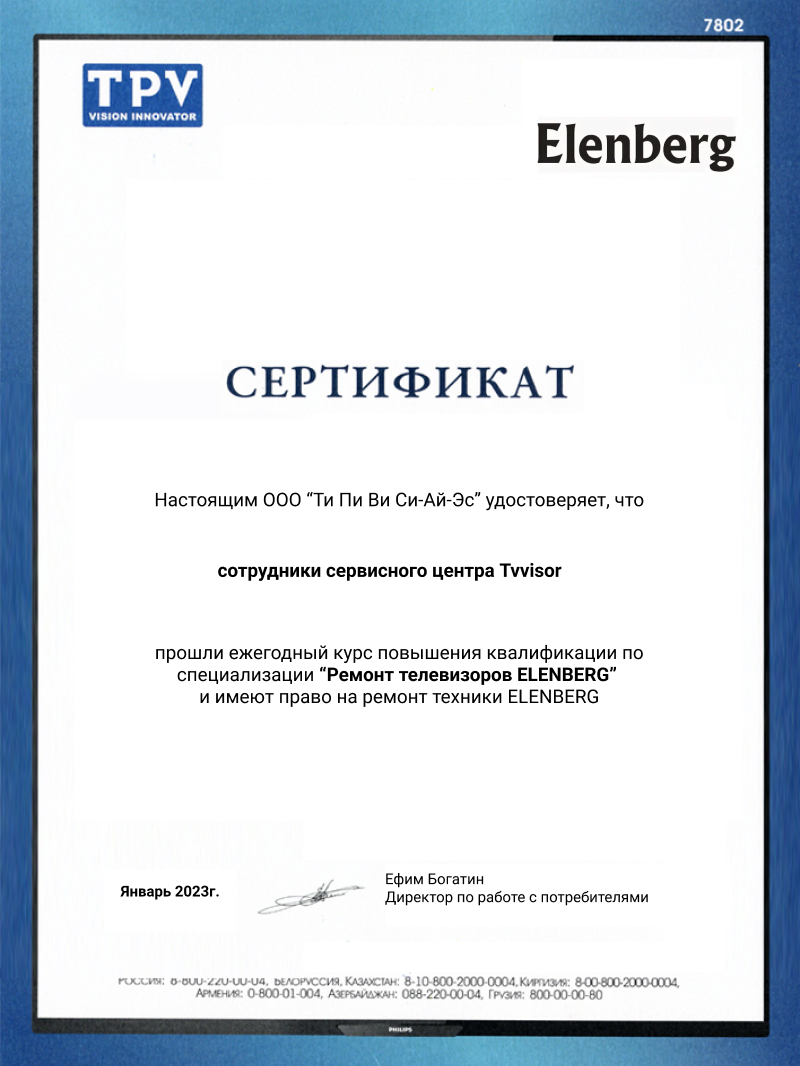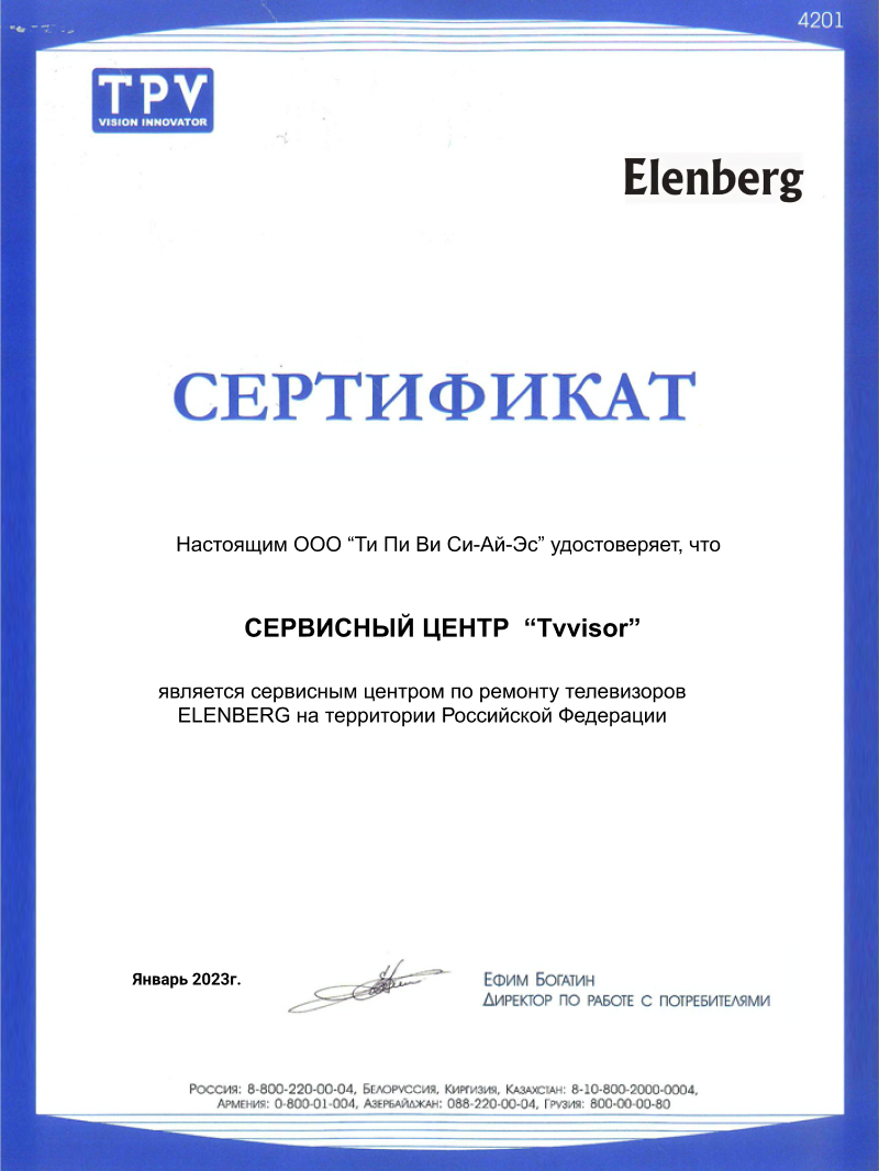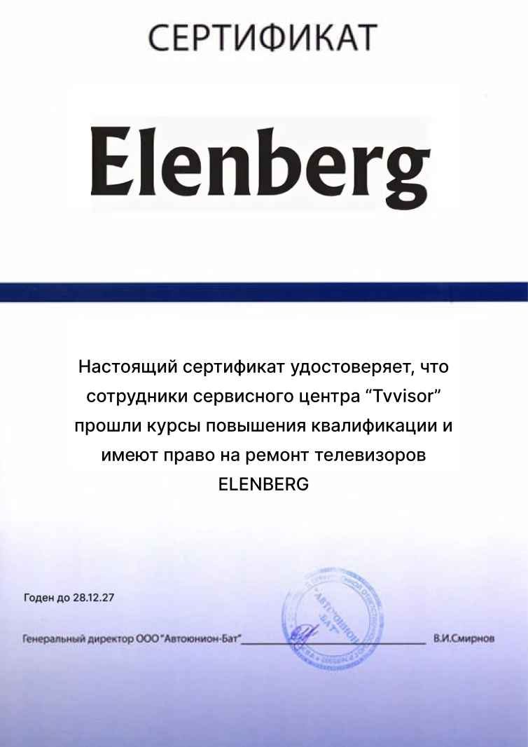 Ремонт телевизоров Elenberg в Москве – это та сфера ремонта телевизоров, в которой услуги нашей компании отточены до самого высокого уровня. Если нужен ремонт ТВ Elenberg – обратитесь в TV Visor!