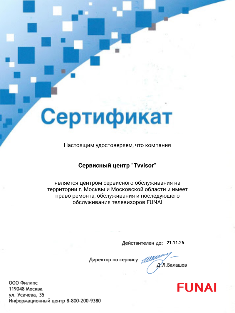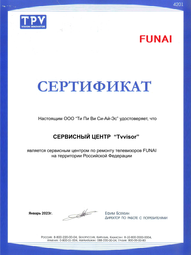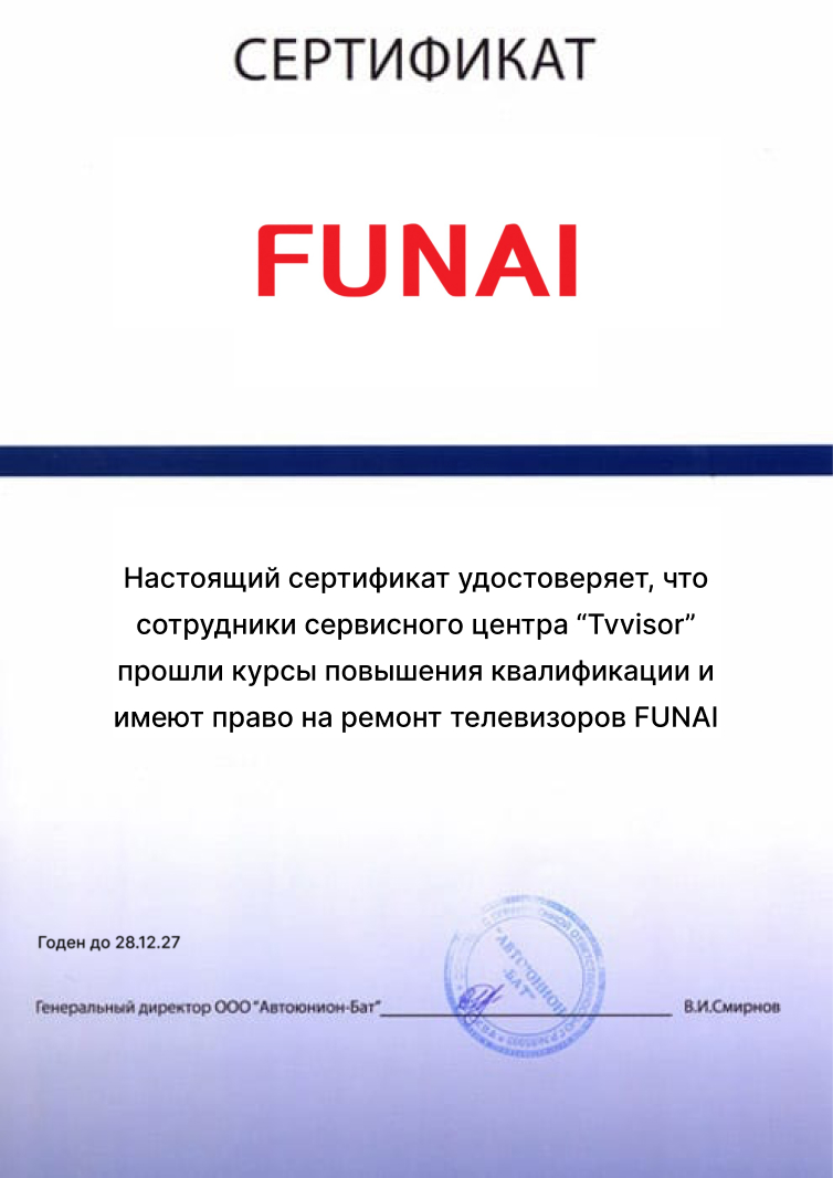 Ремонт телевизоров Funai в Москве – это та сфера ремонта телевизоров, в которой услуги нашей компании отточены до самого высокого уровня. Если нужен ремонт ТВ Funai – обратитесь в TV Visor!