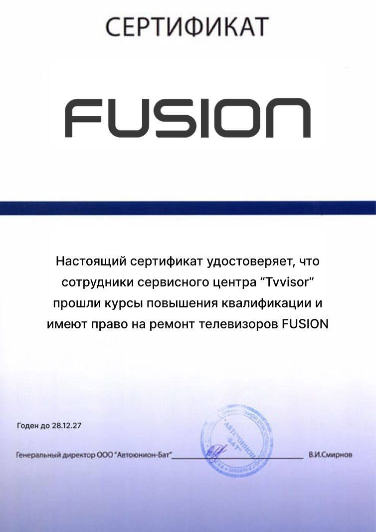 Ремонт телевизоров Fusion в Москве – это та сфера ремонта телевизоров, в которой услуги нашей компании отточены до самого высокого уровня. Если нужен ремонт ТВ Fusion – обратитесь в TV Visor!