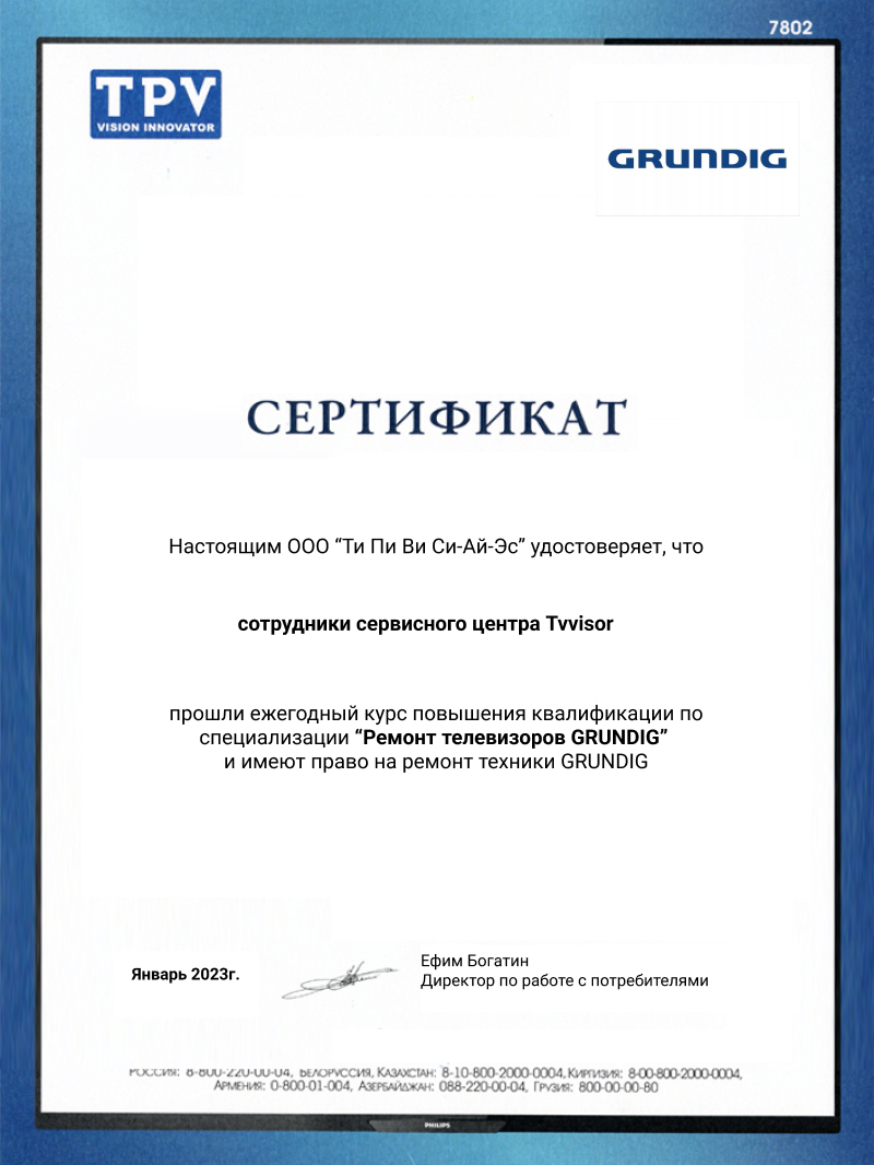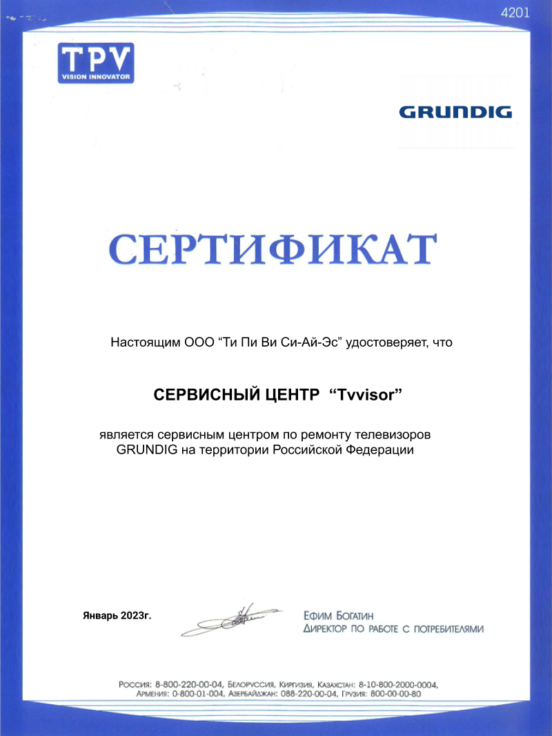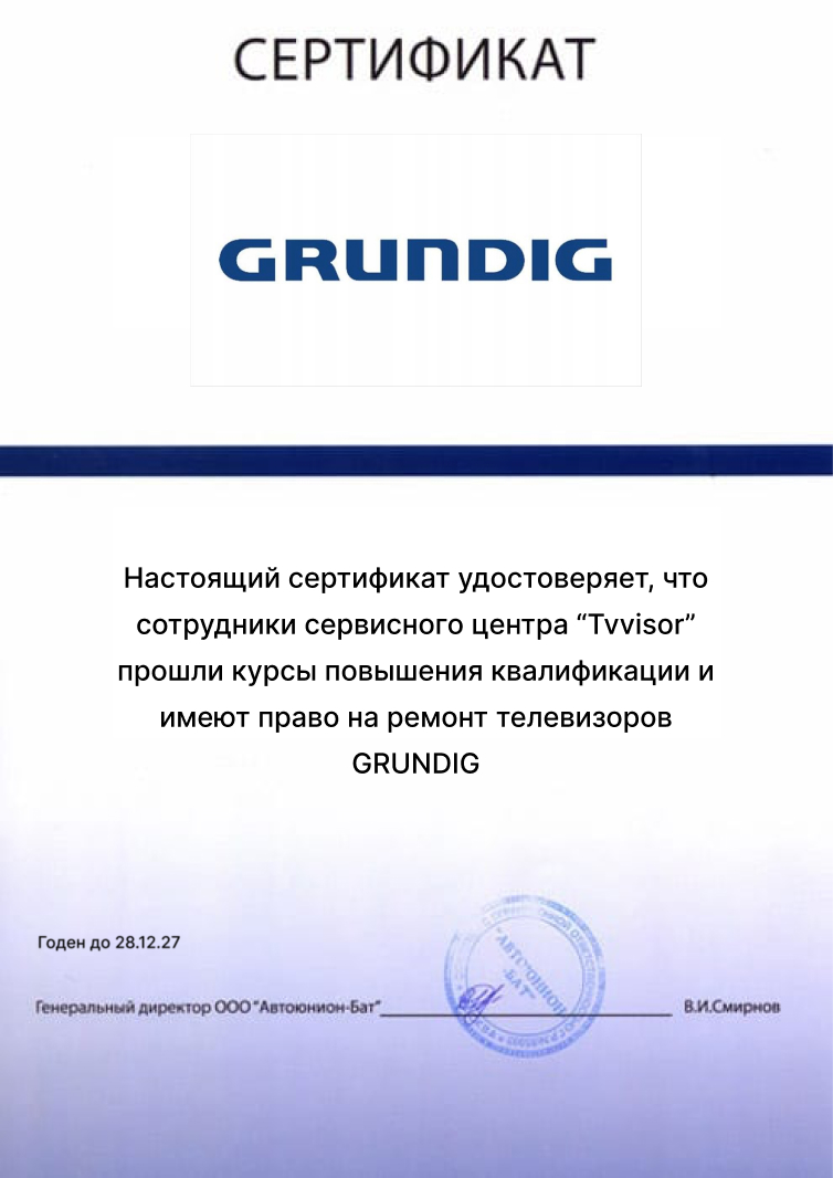 Ремонт телевизоров Grundig в Москве – это та сфера ремонта телевизоров, в которой услуги нашей компании отточены до самого высокого уровня. Если нужен ремонт ТВ Grundig – обратитесь в TV Visor!