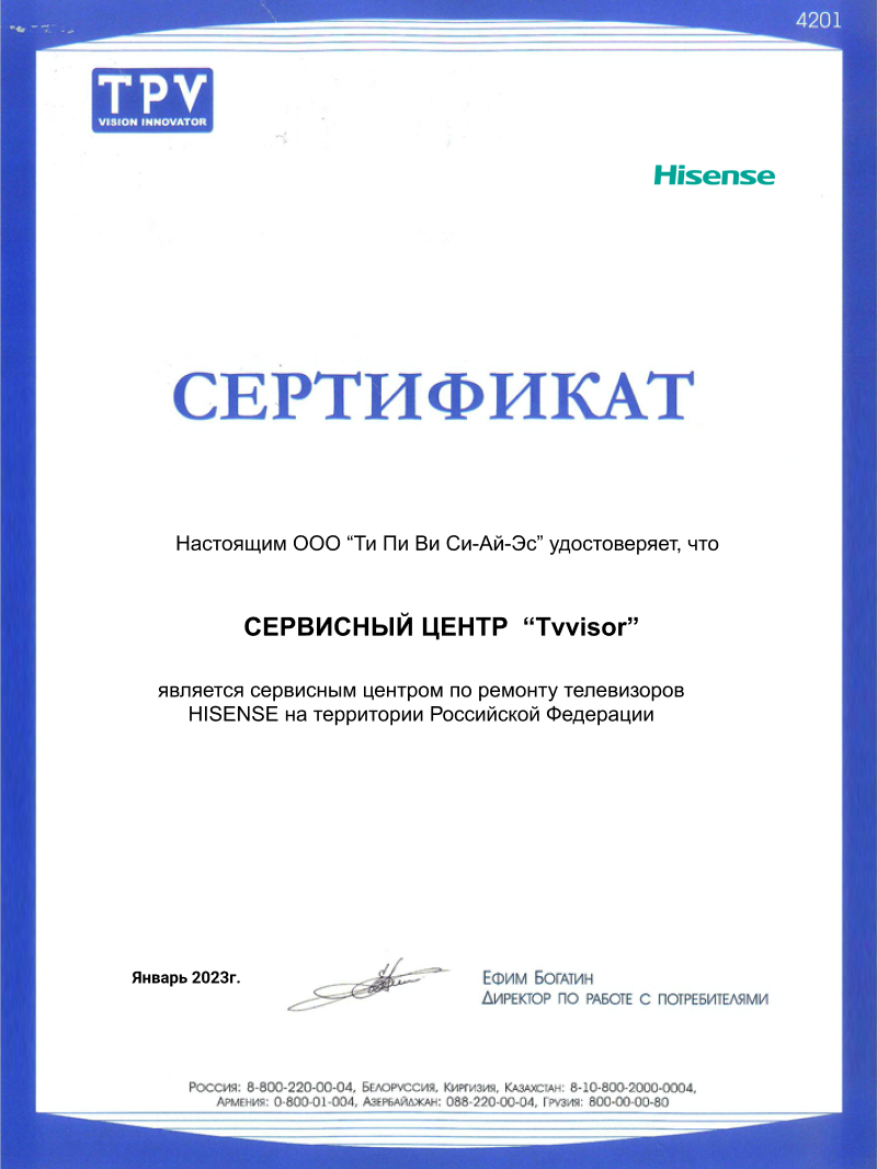 Ремонт телевизоров Hisense в Москве – это та сфера ремонта телевизоров, в которой услуги нашей компании отточены до самого высокого уровня. Если нужен ремонт ТВ Hisense – обратитесь в TV Visor!