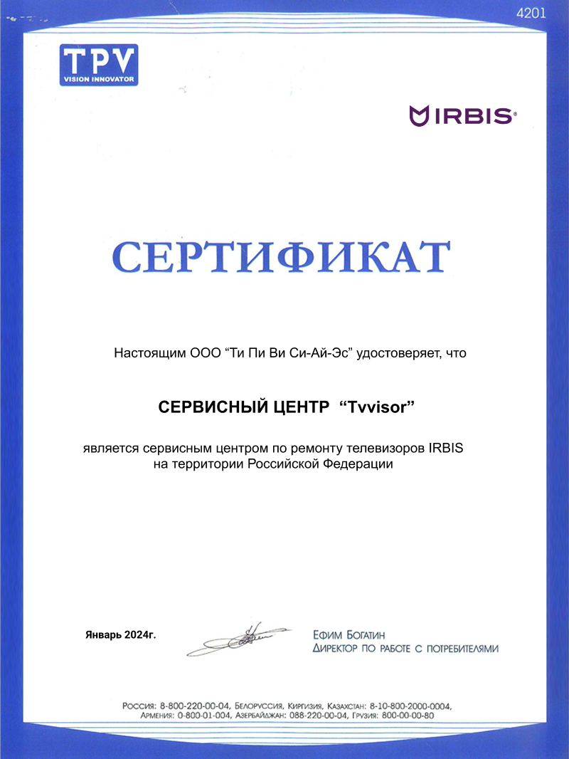 Мы гарантируем быструю и качественную настройку и ремонт вашего телевизора Irbis благодаря опыту нашего мастера. Оставьте заявку на сайте или позвоните: +7 (495) 137-02-73.