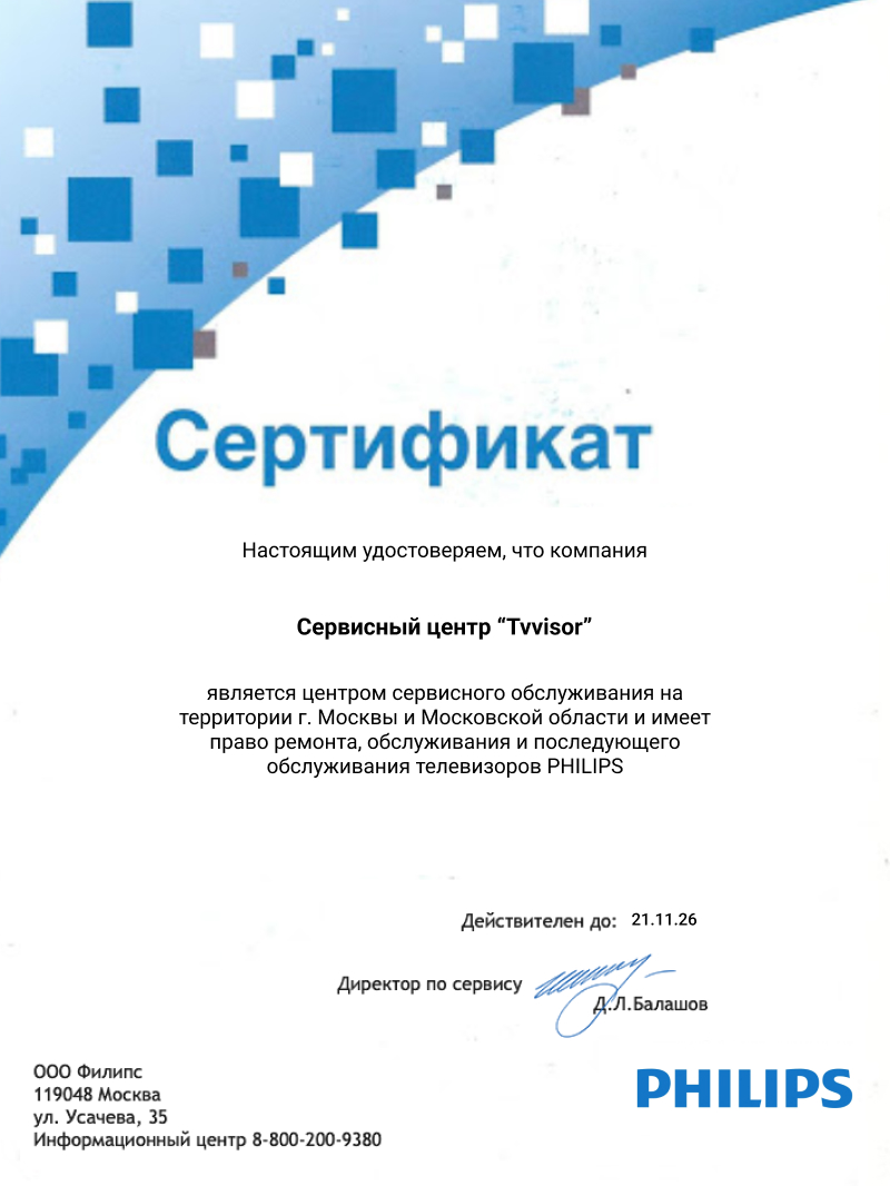 Квалифицированный специалист оперативно починит или настроит ваш телевизор Philips. Закажите услугу на сайте или звоните +7 (495) 137-02-73.