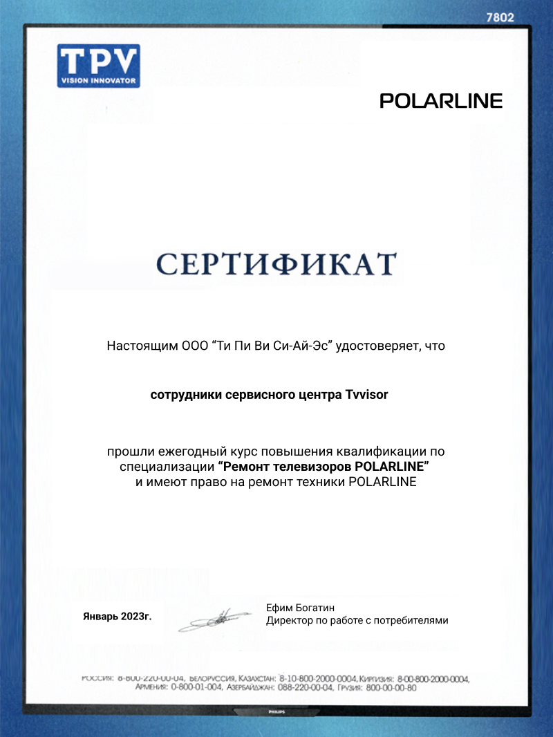Ремонт телевизоров Polarline в Москве – это та сфера ремонта телевизоров, в которой услуги нашей компании отточены до самого высокого уровня. Если нужен ремонт ТВ Polarline – обратитесь в TV Visor!