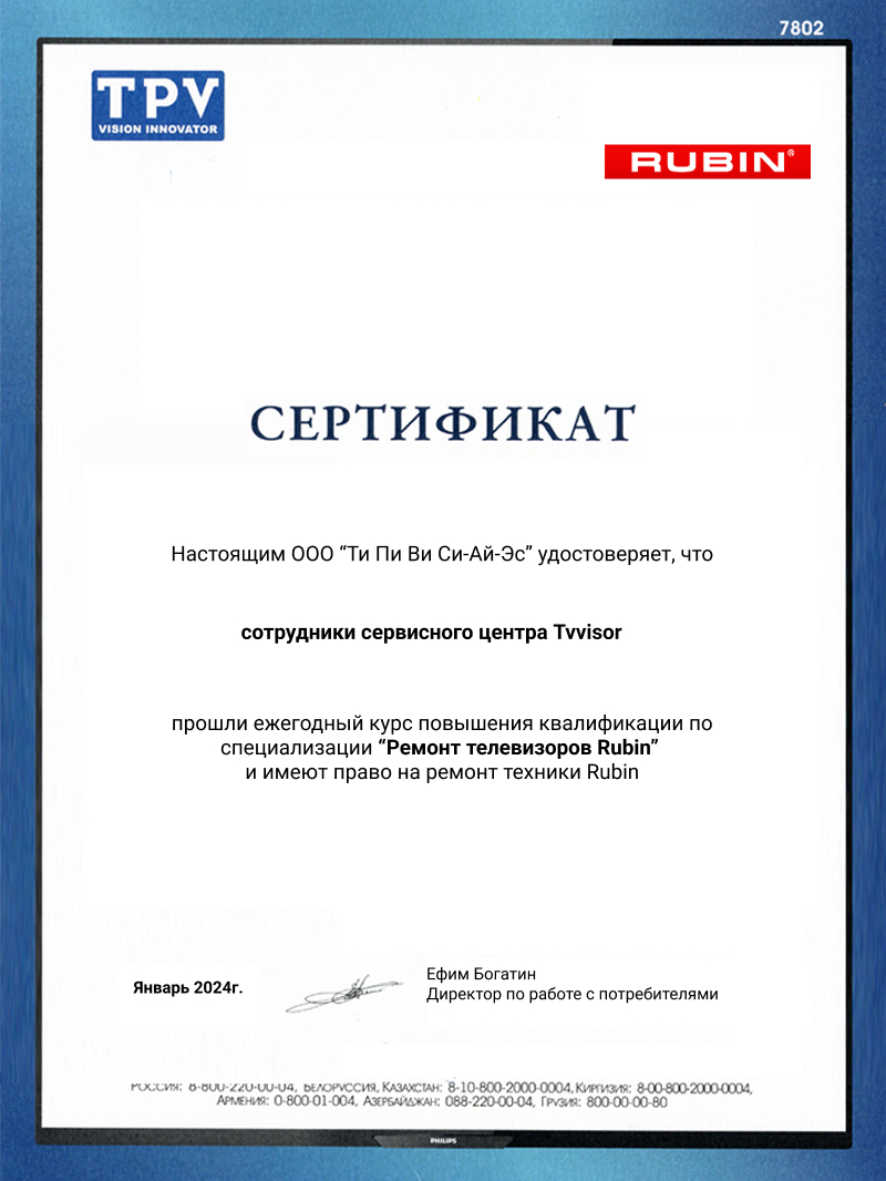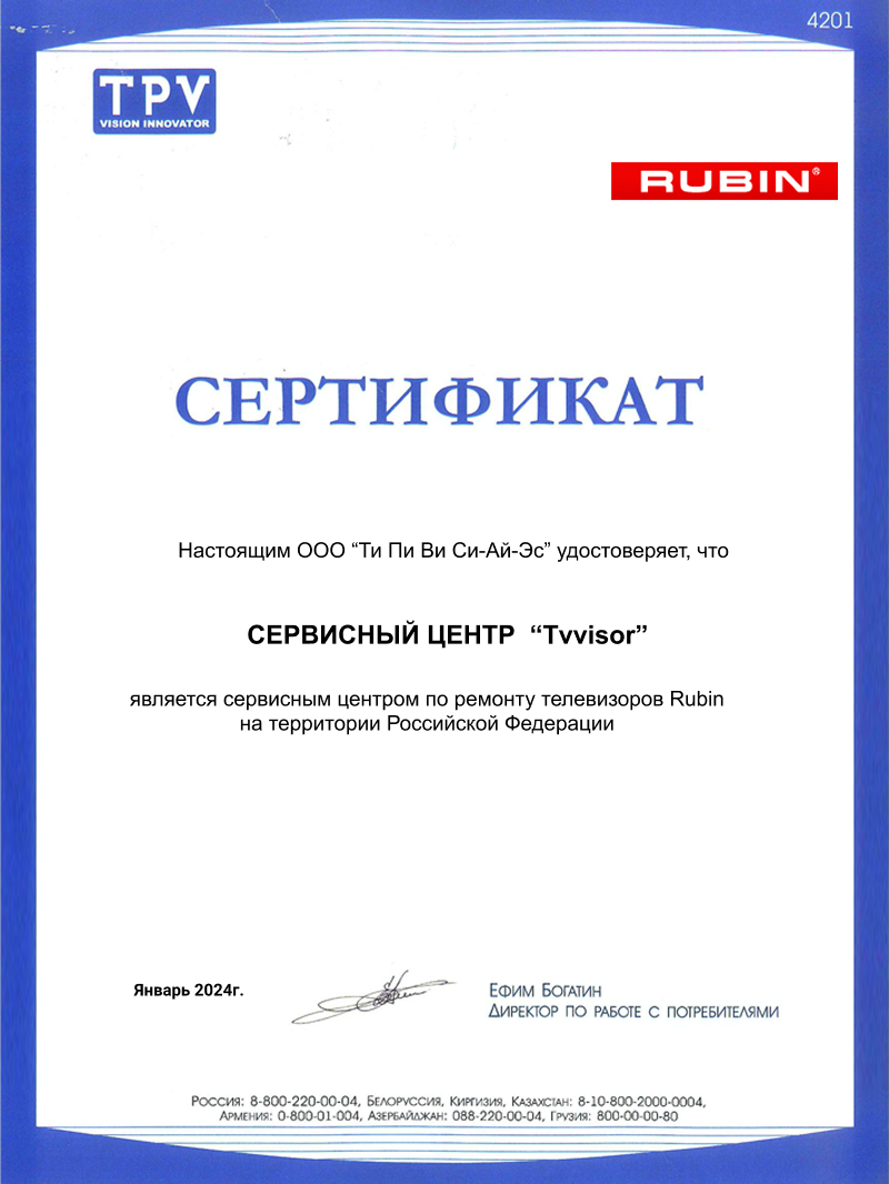 Специалисты сервисного центра TV Visor выполняют все виды ремонтных работ телевизоров Rubin: