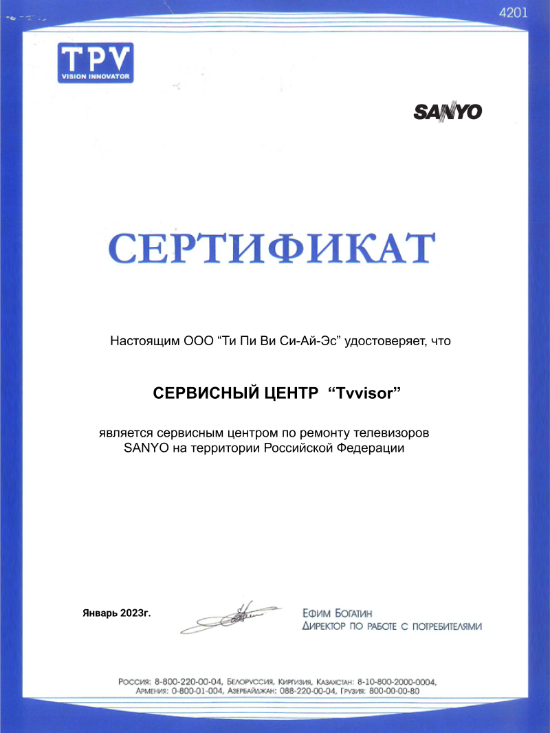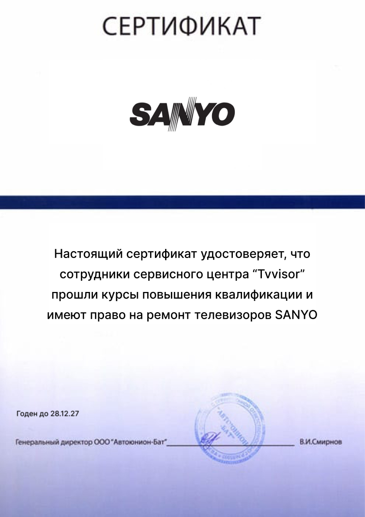 Ремонт телевизоров Sanyo 📺 в Москве – это та сфера ремонта телевизоров, в которой услуги нашей компании отточены до самого высокого уровня ✅. Если нужен ремонт ТВ Sanyo – обратитесь в TV Visor!
