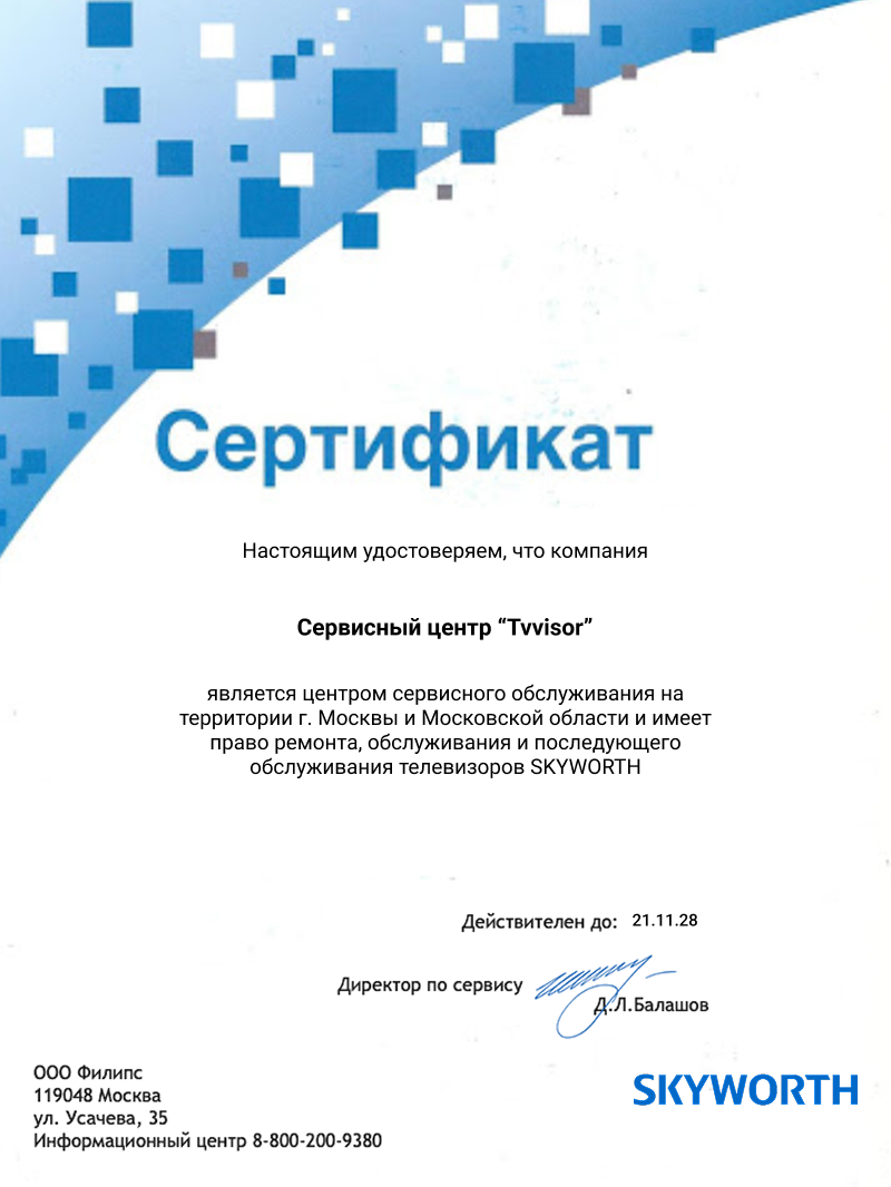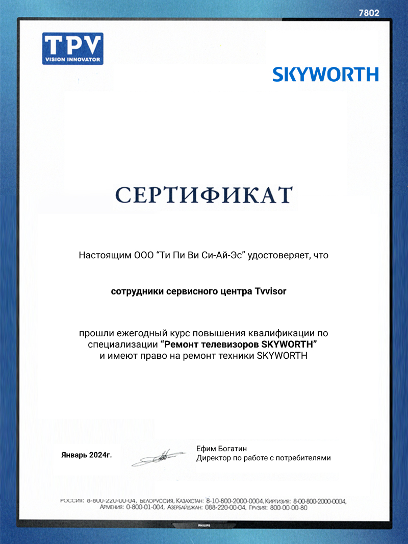 Ваш телевизор Skyworth будет настроен и отремонтирован опытным мастером, оперативно и с гарантией качества. Оставьте заявку на сайте или позвоните: +7 (495) 137-02-73.