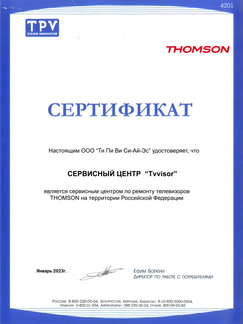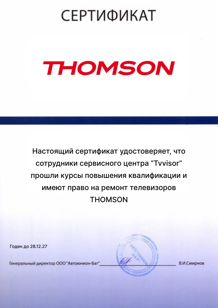 Ремонт телевизоров Thomson в Москве – это та сфера ремонта телевизоров, в которой услуги нашей компании отточены до самого высокого уровня. Если нужен ремонт ТВ Thomson – обратитесь в TV Visor!